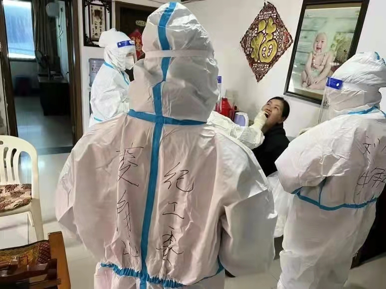 由于医护人员对封控区内情况不熟悉,每天早上8点协助医护人员上门为居民开展核酸采样、督查封控区疫情防控措施落实情况成了我们街道纪工委的主要任务之一。