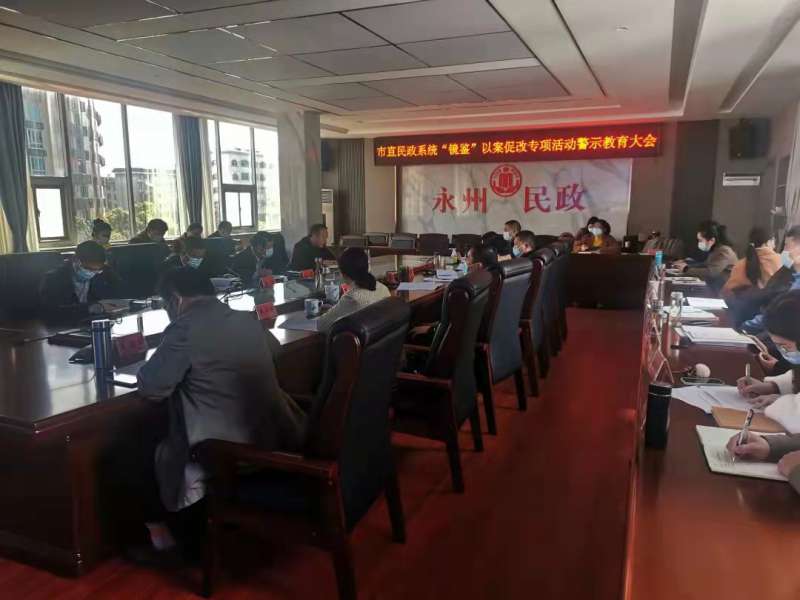 3月29日,市民政局召开市直民政系统“镜鉴”以案促改专项活动警示教育大会。会上学习传达了市委开展“镜鉴”以案促改专项警示教育会议精神和相关工作要求,对市直民政系统“镜鉴”以案促改专项活动进行了安排部署;集中观看了《反腐倡廉永远在路上(守护国之大者)》《迷失的初心五》两个警示教育片。