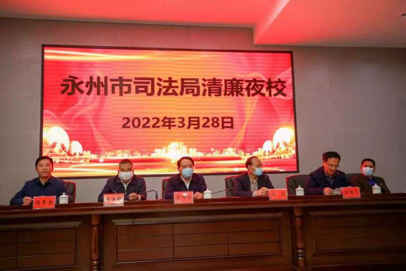 今年来,市司法局坚决贯彻市委、市纪委建设清廉永州的部署,提出“建设清廉司法、打造模范机关”工作品牌,采取一系列举措不断铺陈风清气正的机关政治生态新图景:1月18日首次对科室负责人开展述职述廉并进行评议打分,1月30日向全系统干警发出廉洁过节公开信;2月初结合“清廉家访”将以案促改工作延伸到受处分干警家里,2月中旬启动“青廉工程”加强青年干警教育监督管理;3月18日在全市司法行政系统部署“中梗阻”专项整治活动…… 为持续擦亮“建设清廉司法、打造模范机关”品牌,市司法局2022年第7次党组会议决定开办“清廉夜校”,以奋斗姿态锻造一支让党和人民信得过、靠得住、能放心的铁军队伍。在驻局纪检监察组的配合指导下,局机关党委精心谋划、压茬推进,在严格落实疫情防控措施的基础上,市司法局首期清廉夜校如期举办。