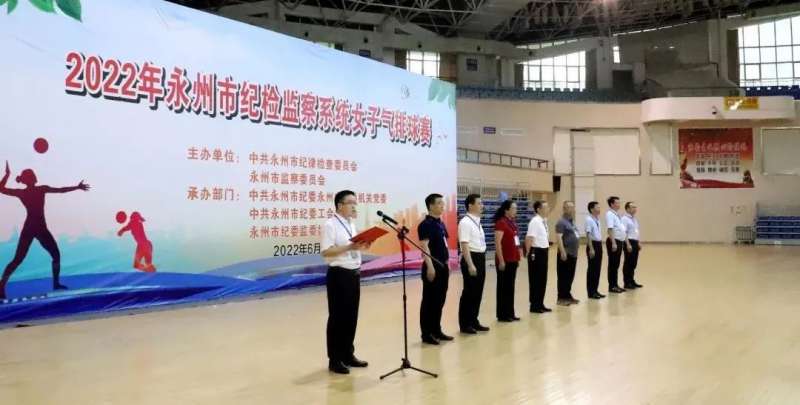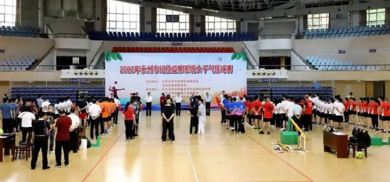 6月16日上午,2022年永州市纪检监察系统女子气排球比赛在雄壮的国歌声中拉开帷幕。来自全市纪检监察系统的13支气排球队伍,齐聚市体育中心,开展竞技。