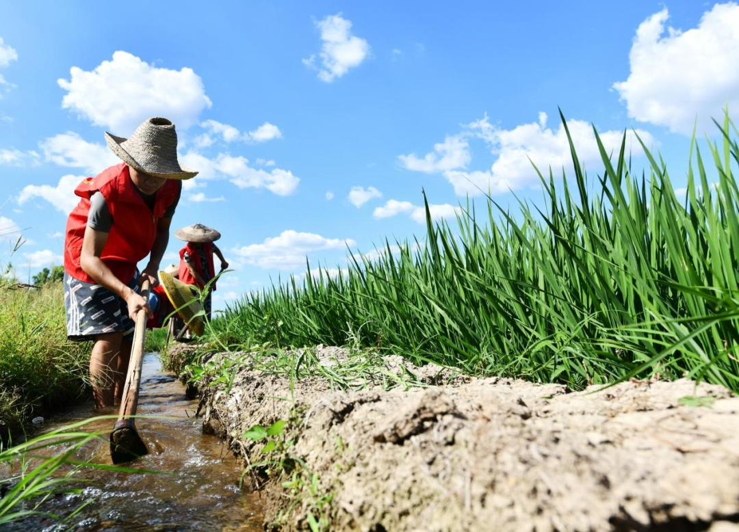炎炎烈日,在常宁市官岭镇鹅院村,镇纪委工作人员和群众一道深入田间地头开展农田灌溉与渠道清理工作,全力缓解旱情,保障农田水渠畅通。