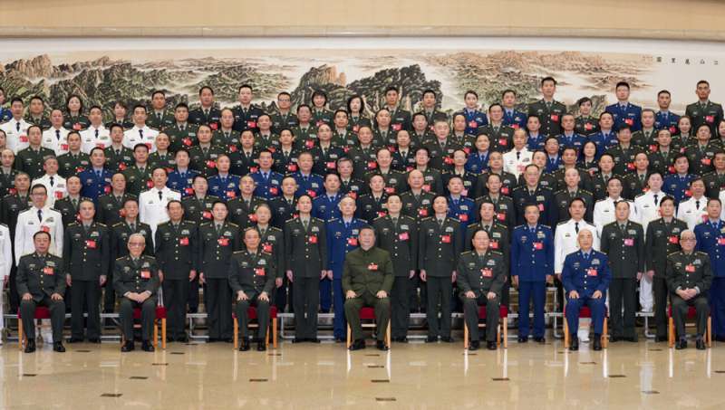 会议召开前,习近平亲切接见出席党的二十大解放军和武警部队全体代表、特邀代表、列席人员,同大家合影留念。