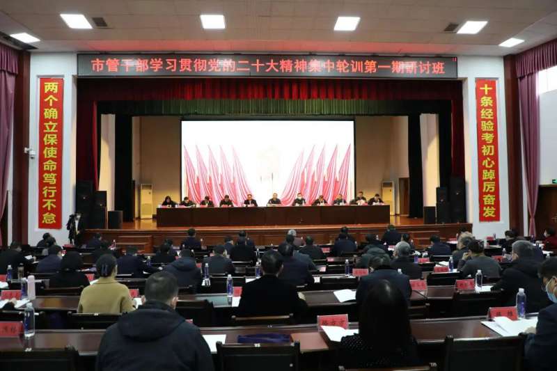 12月6日下午,市管干部学习贯彻党的二十大精神集中轮训第一期研讨班开班。市委书记朱洪武在开班式上强调,要真学真懂、真信真用,始终高举旗帜奋进新征程、紧跟核心夺取新胜利,更加奋发有为地走好新时代的赶考之路。市委副书记、市委统战部部长单铸飞主持开班式。市领导谢景林、侯文、陈刚、张嘉庆、刘厚、何恩广、祝云武、张建坤、刘玲军等参加。