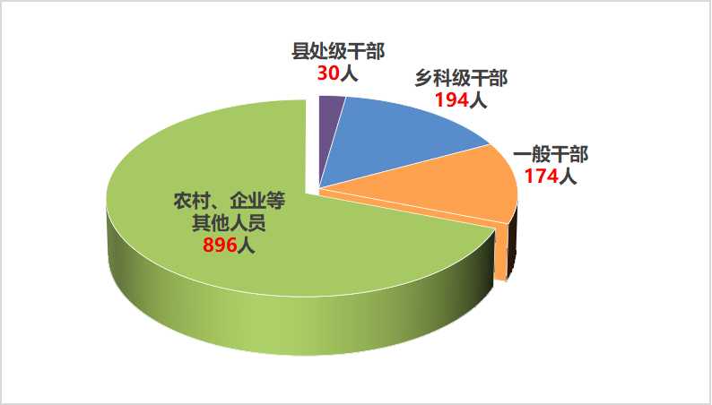2023年1至9月,全市纪检监察机关共接收信访举报 2211件次,处置问题线索4033件,谈话函询1295件次,立案1619件,处分1294人(其中党纪处分957人)。处分县处级干部30人,乡科级干部194人,一般干部174人,农村、企业等其他人员896人。