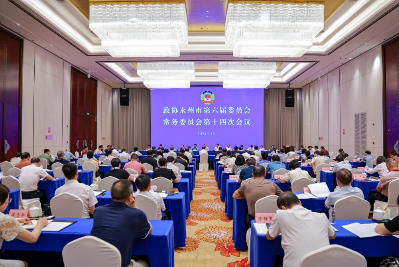 今日永州讯(记者 张华兵 通讯员 彭泉江 摄影 袁志圣)9月19日上午,政协永州市第六届委员会常务委员会第十四次会议在冷水滩召开,传达学习中共二十届三中全会和习近平总书记近期重要讲话精神、省政协十三届九次常委会精神,通报市政府关于市政协六届三次会议以来提案办理情况,审议通过关于“谋划永清广高铁和湘桂运河产业经济带”向中共永州市委、永州市人民政府的建议案(草案),协商有关人事事项。市委书记朱洪武到会听取政协委员关于谋划“一路一河”产业经济带的意见建议并讲话,强调要打好“谋划”和“实干”两张牌,做好“产业、平台、交通、环境”四篇文章,推进“一路一河”产业经济带建设。市政协党组书记、主席谢景林主持会议,市委常委、常务副市长刘厚,市政协副主席桂砺锋、潘衡湘、魏秋云、黄玉芳、蒋井泉、姚如男、韩顺华,二级巡视员李旦梅,秘书长顾晓姣出席会议。
