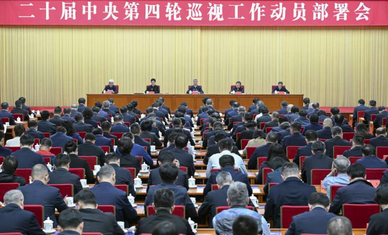 中共中央政治局委员、中央巡视工作领导小组副组长李干杰宣布二十届中央第四轮巡视组长授权任职和任务分工决定,中共中央书记处书记、中央巡视工作领导小组副组长刘金国主持会议。