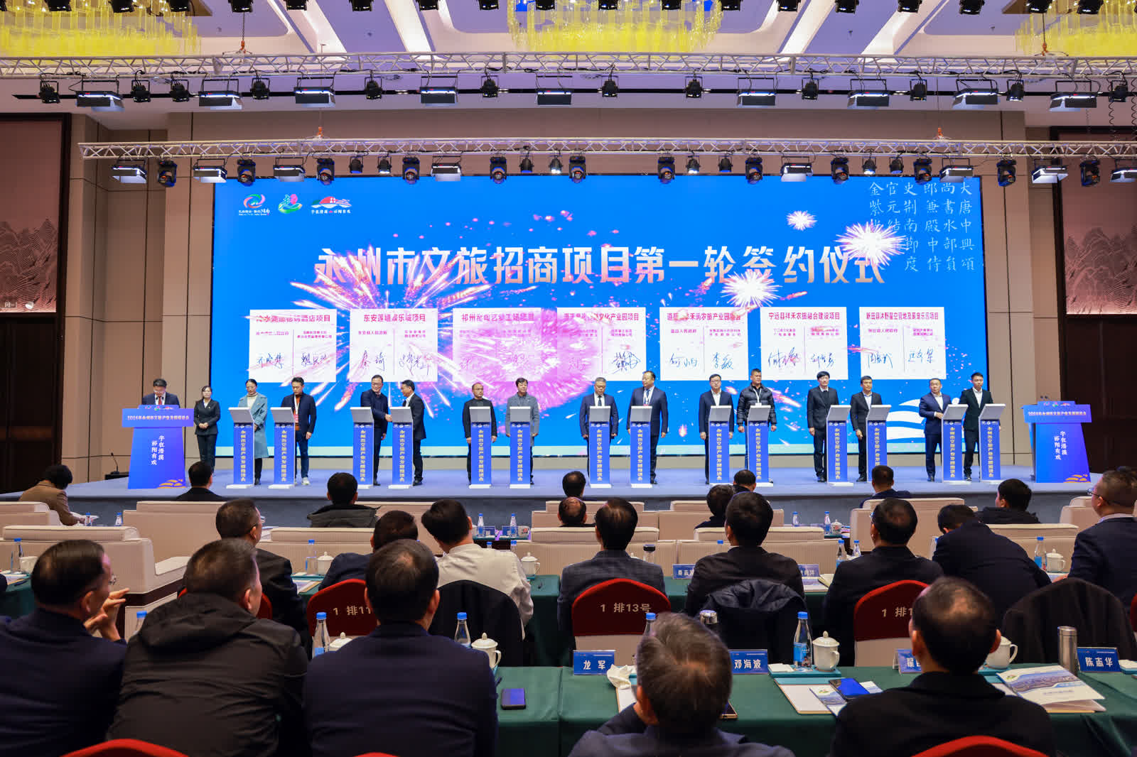 会上,市人大常委会党组书记、主任蒋强先向第四届永州旅游发展大会承办地宁远县授旗。市委常委、常务副市长刘厚代表市人民政府与农行湖南省分行签署文化创意旅游产业战略合作协议。副市长周云玲作全市文旅招商项目推介,21个文旅招商项目成功签约。中国农业银行与我市7家文旅企业进行授信签约。省气象局、省林业局、永州市政府等8家单位联手共建的油茶产学研用多功能示范基地——湖南祁阳油茶气象科技小院揭牌。祁阳、金洞作文旅产业发展典型发言。